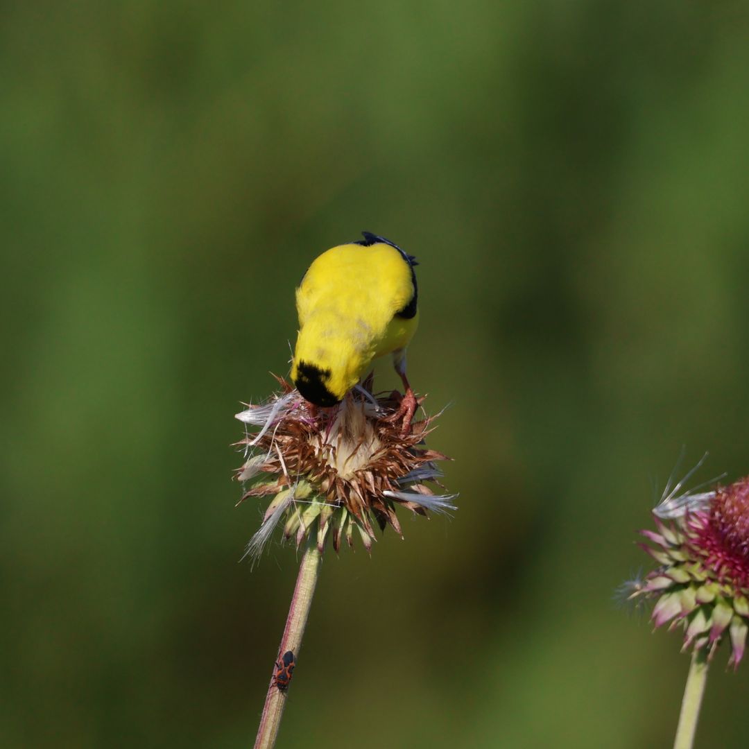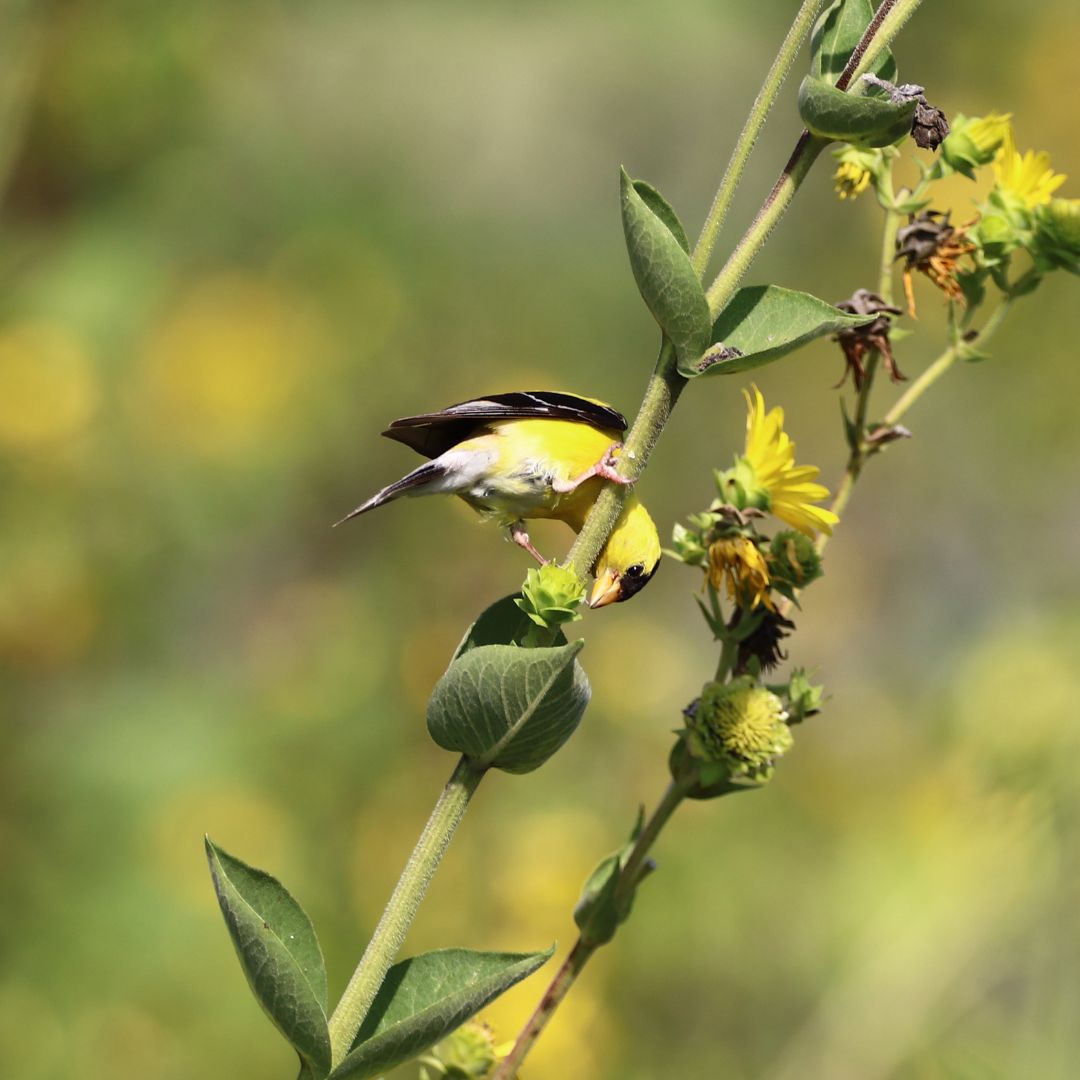 Goldfinches are known as acrobatic birds, and the bird feeding industry has taken advantage of their unique skill to eat upside down for long periods of time.